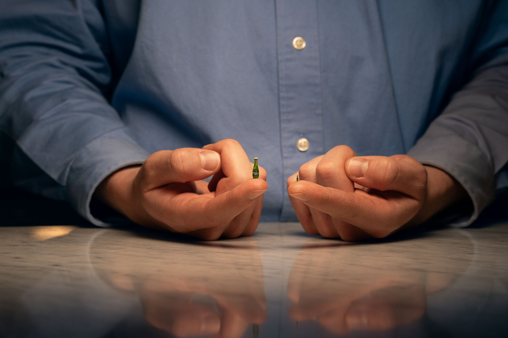KTH-kvintetten pluggar civilingenjör i samhällsbyggnad och drog nytta av sin akademiska bana när de tog fram världens minsta öl. Med en digital 3D-modell av en klassisk 33 cl-flaska från Carlsberg använde studenterna en högprecisions-3D-skrivare för att testa hur liten flaskan kunde göras. Fyra millimeter visade sig vara gränsen. Efter rengöring av insidan med en mikrokanyl och härdning i UV-ljus var flaskan färdig. Därefter hjälpte miniatyrkonstnären Åsa Strand till med färg, kapsyl, etikett och påfyllning.